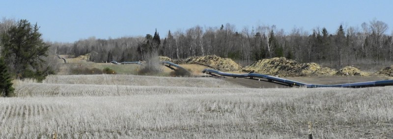 One key thing to watch for is a stretch of pipeline welded together before it’s in the trench, such as this photo below from Hubbard County.
